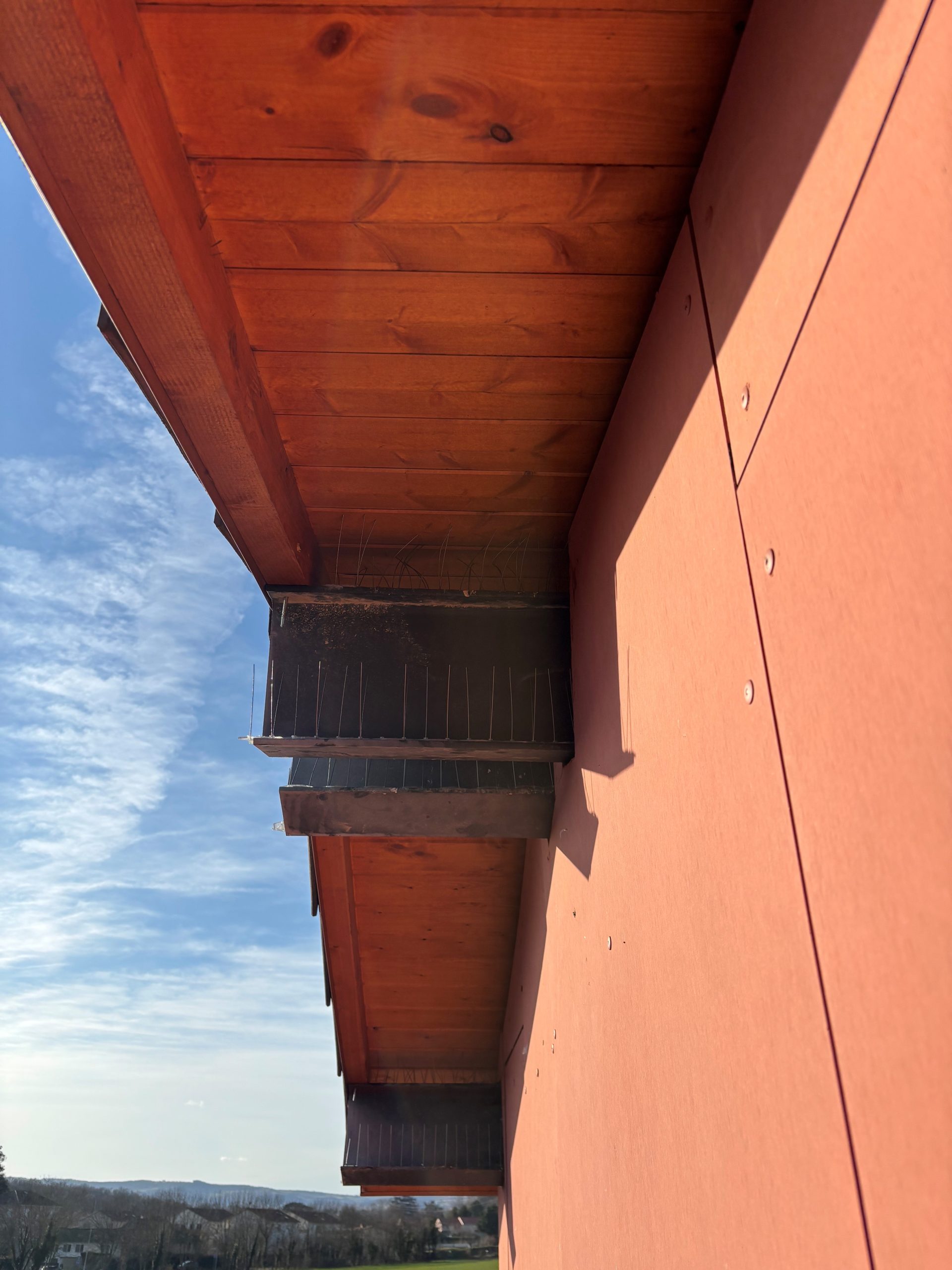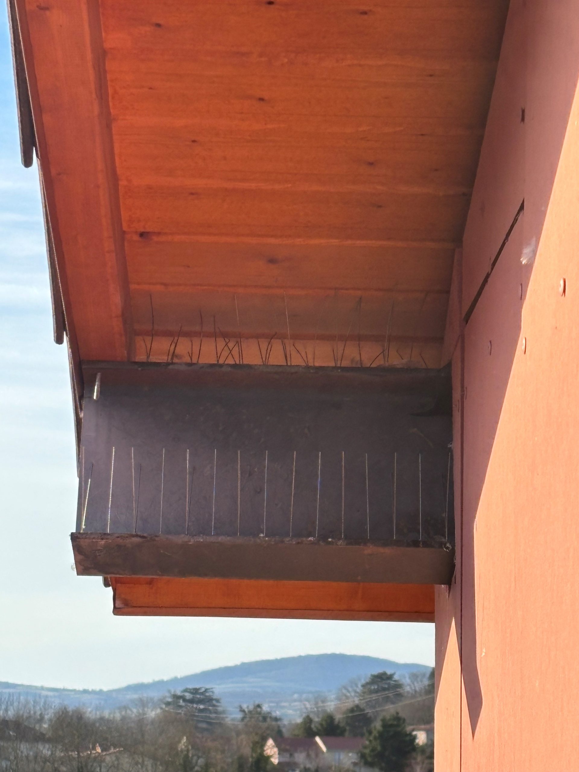 Vos professionnels de la désinfection et du dépigeonnage ont effectué le brossage à la brosse métallique des fientes de pigeon sur les IPN et façades+ un traitement bactéricide par pulvérisation puis un dépigeonnage avec mise en place de pics à pigeons sur les IPN et gouttières.