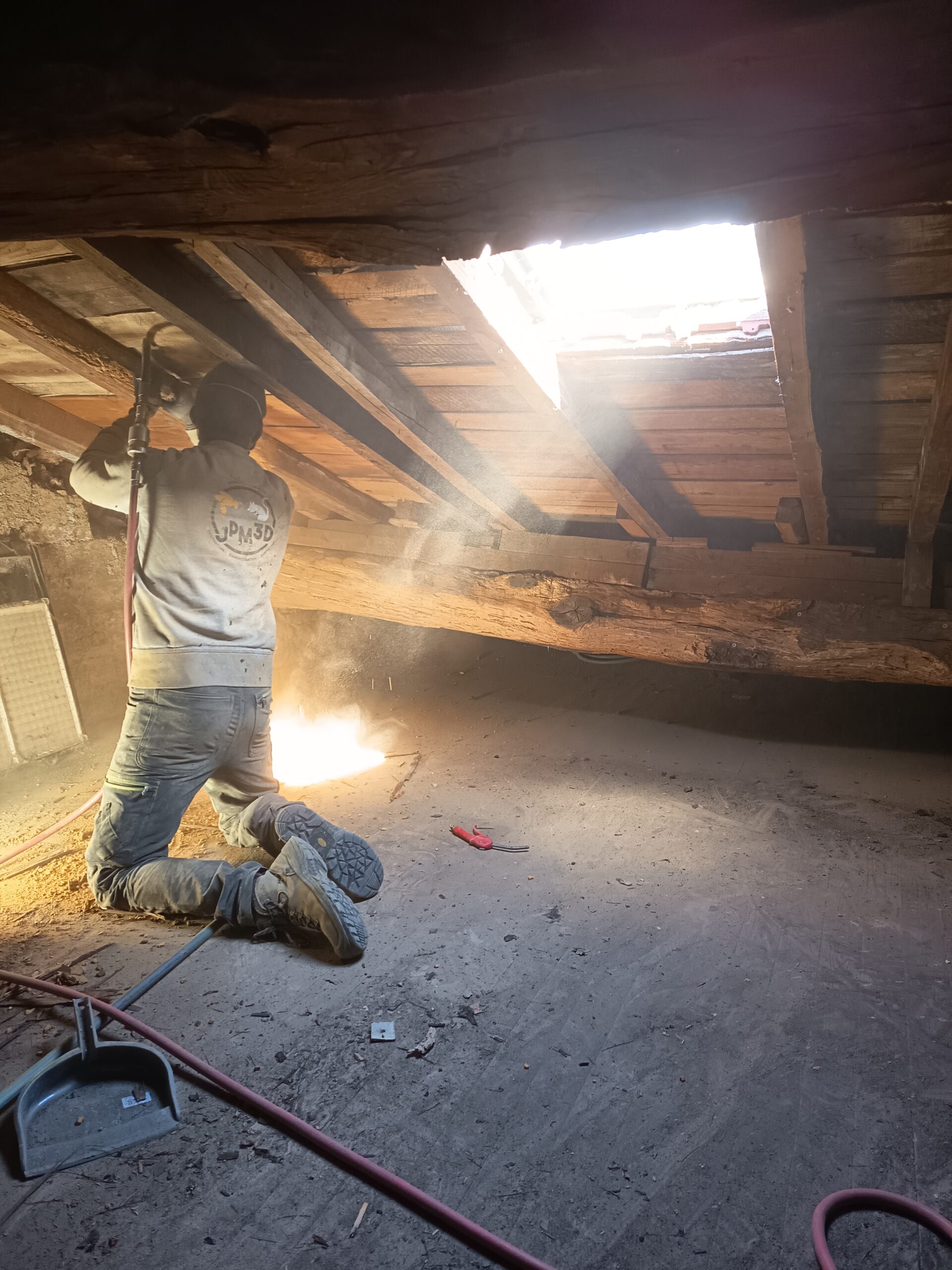 JPM 3D a réalisé un traitement des bois et charpente contre les insectes xylophages dans les combles d'une maison à Beaujeu dans le Rhône (69).