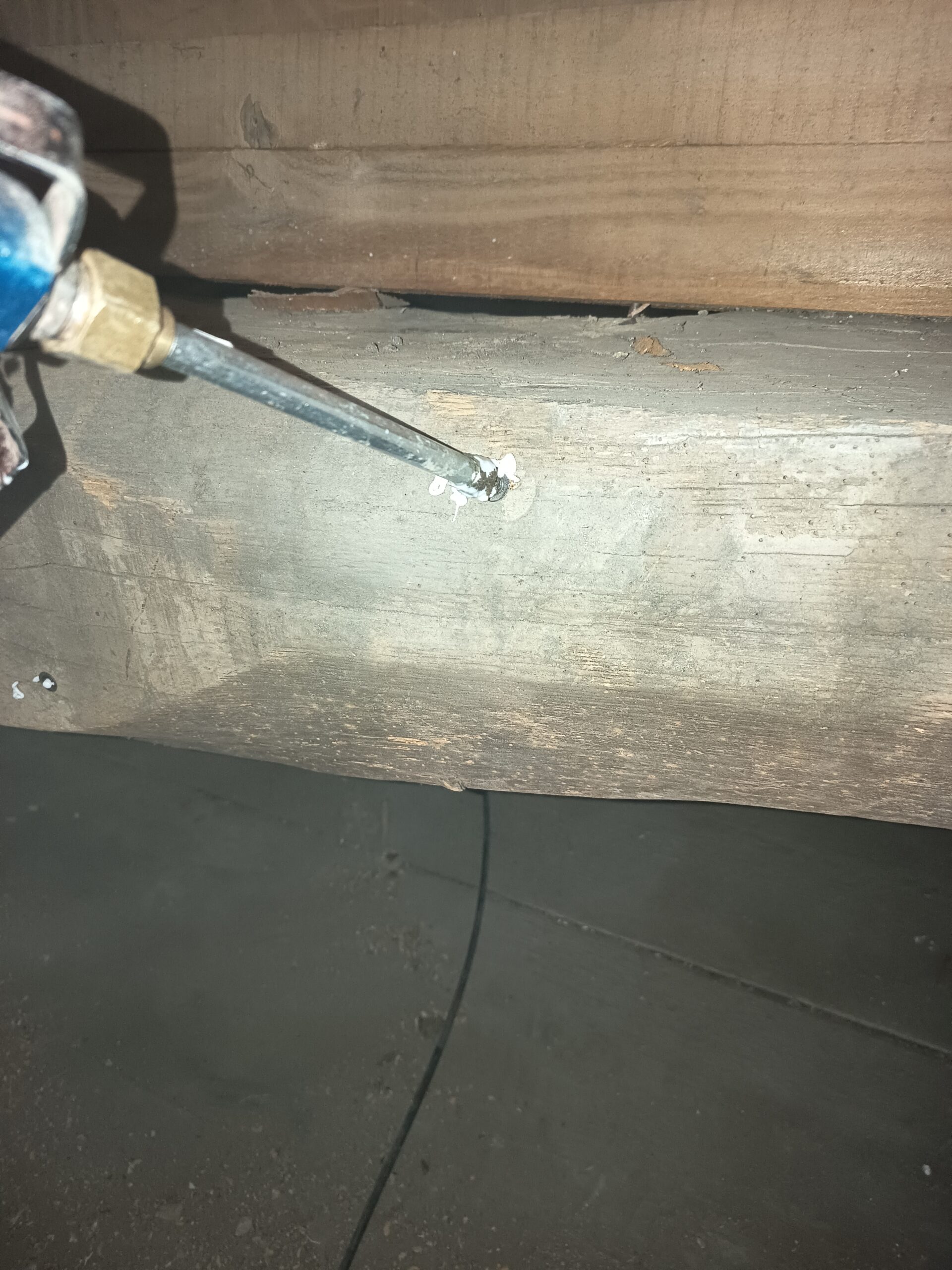 Vos professionnels du traitement de bois ont effectué un gros buchage des bois, le dépoussiérage, le perçage des grosses pièces de bois, la mise en place d'injecteurs, l'injection et l'imprégnation totale de la charpente au Xilix gel insecticide + la détermination des éléments à renforcer ou à remplacer par un charpentier + le nettoyage et l'enlèvement des déchets.