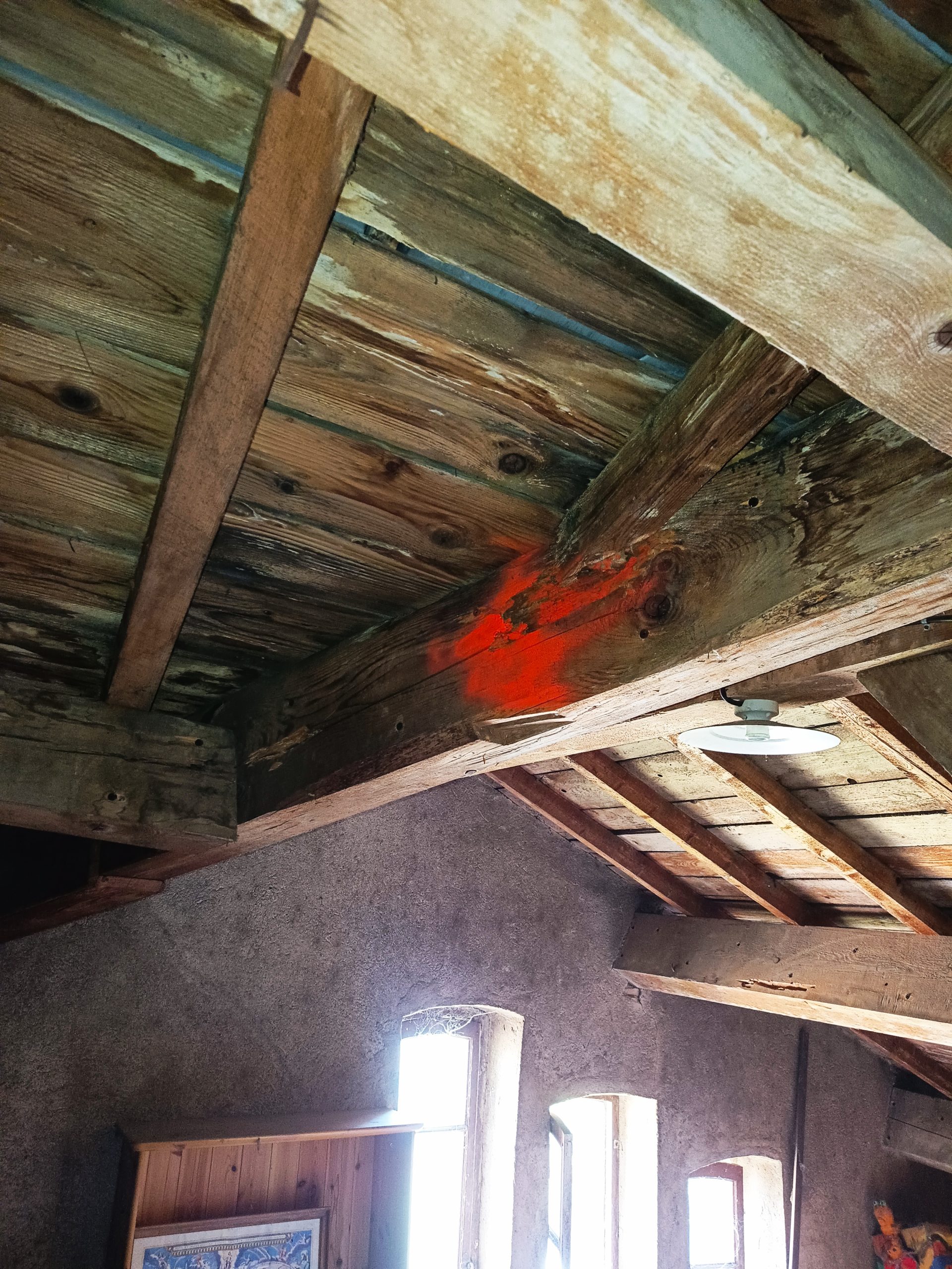 Vos professionnels du traitement de bois ont effectué un léger décapage, le dépoussiérage, le perçage des grosses pièces de bois, la mise en place d'injecteurs, l'injection et l'imprégnation totale de la charpente au Xilix gel insecticide + la détermination des éléments à renforcer ou à remplacer par un charpentier (marqué au scotch orange) + le nettoyage et l'enlèvement des déchets.